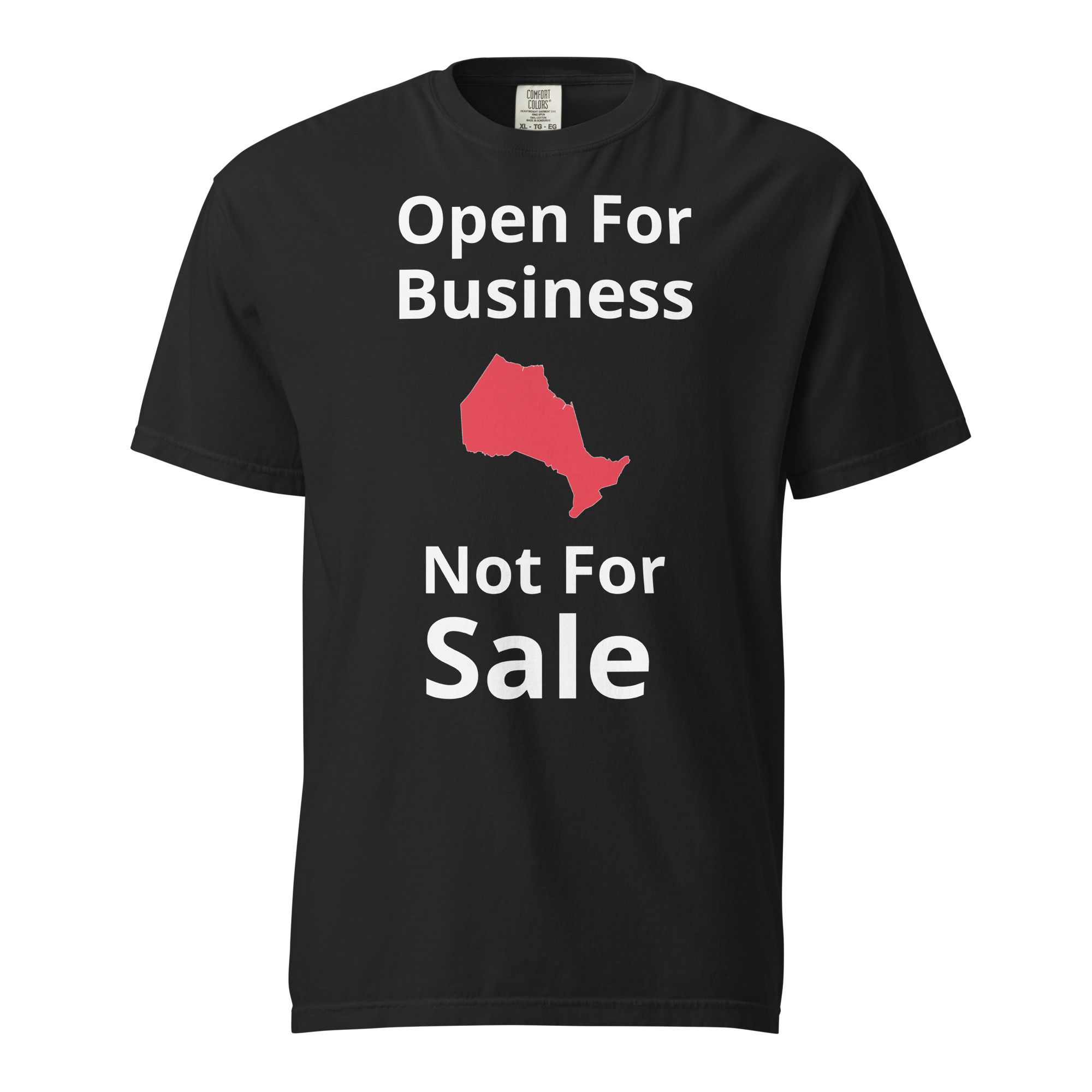 This design is a mashup on an Ontario ad campaign “Open For Business” and a threat from the USA regarding making Canada a State lending to the “Not For Sale”. Guess how we feel about that.